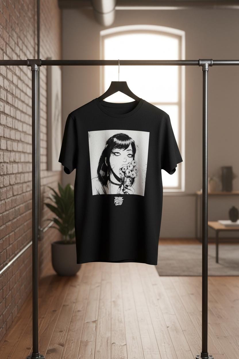 Step into the dark, stylish world of Zombie Makeout Club with this “Eye Scream” graphic tee! 🧟♂️🍦 Featuring bold, edgy artwork and horror-punk vibes, this shirt is perfect for fans of streetwear, anime, and alternative fashion.