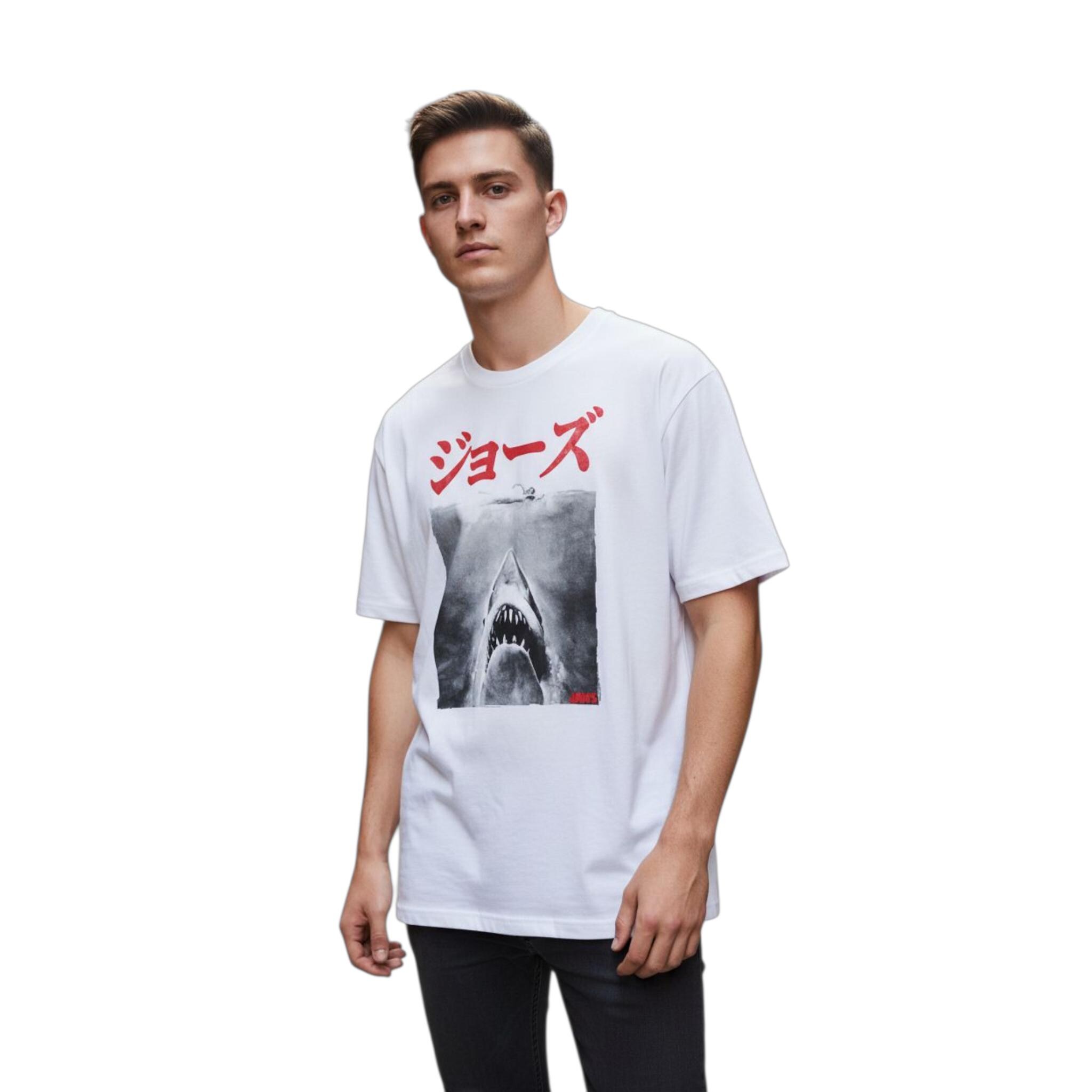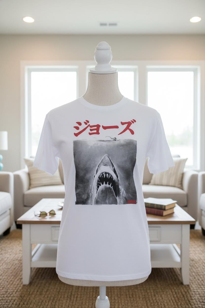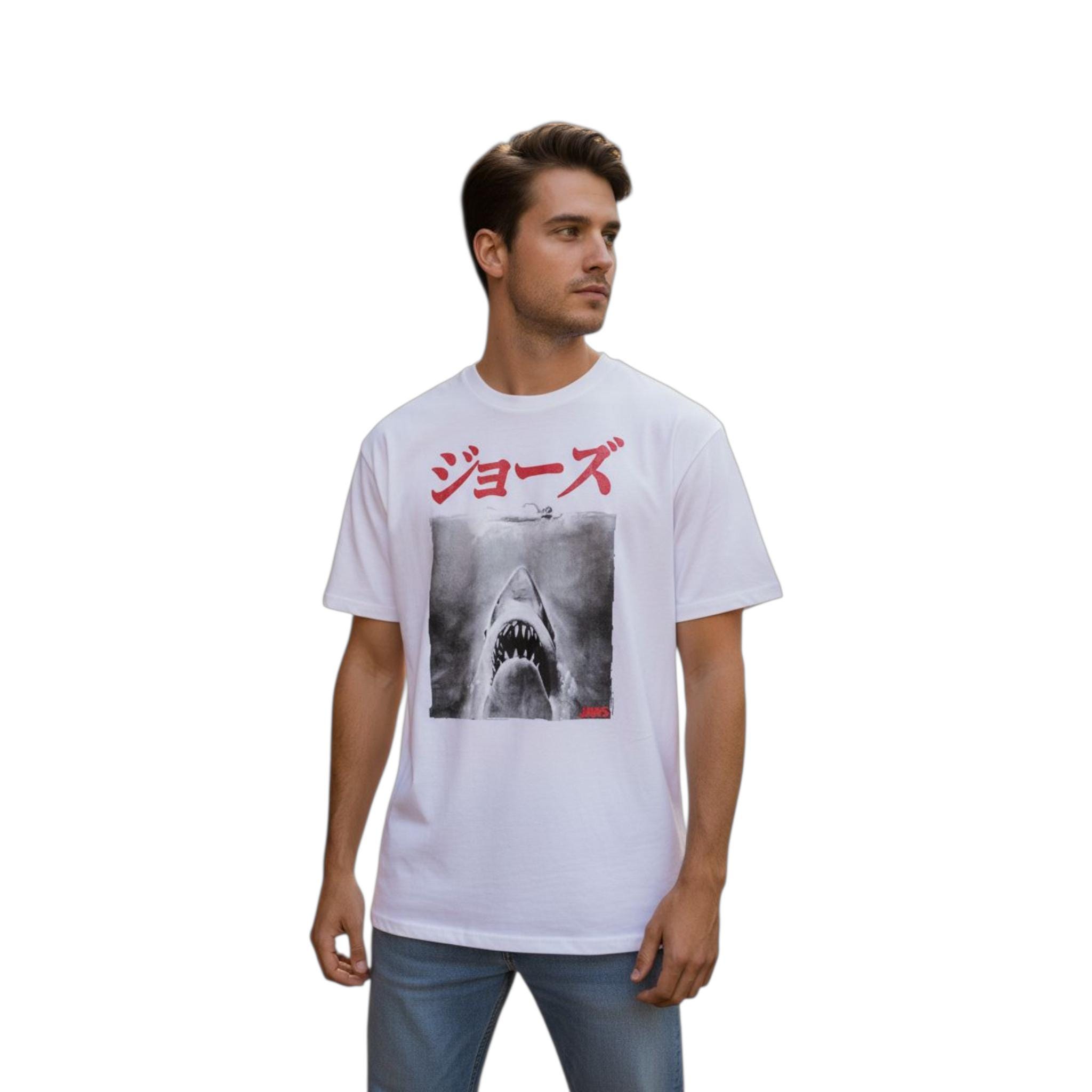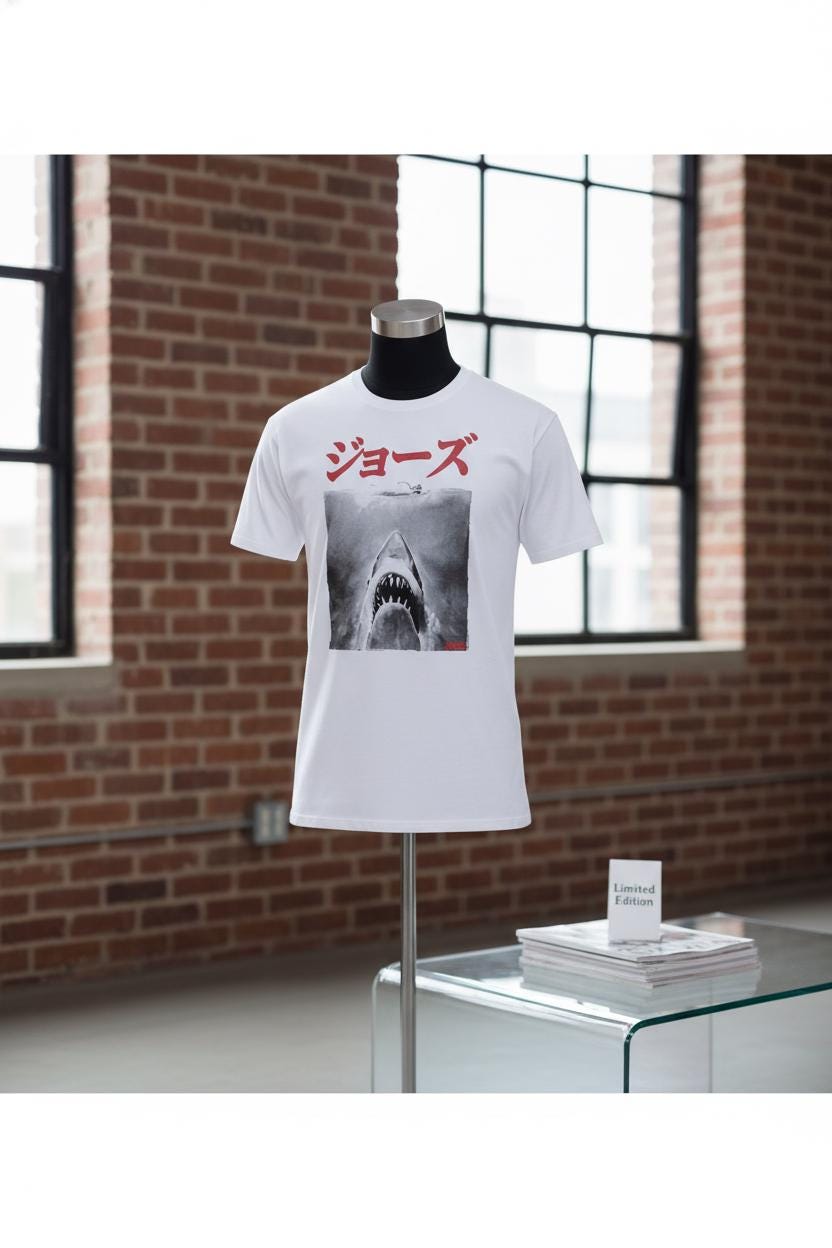 🎬 Unisex Adults White T-Shirt – Jaws Japanese Style Poster (Size XL)