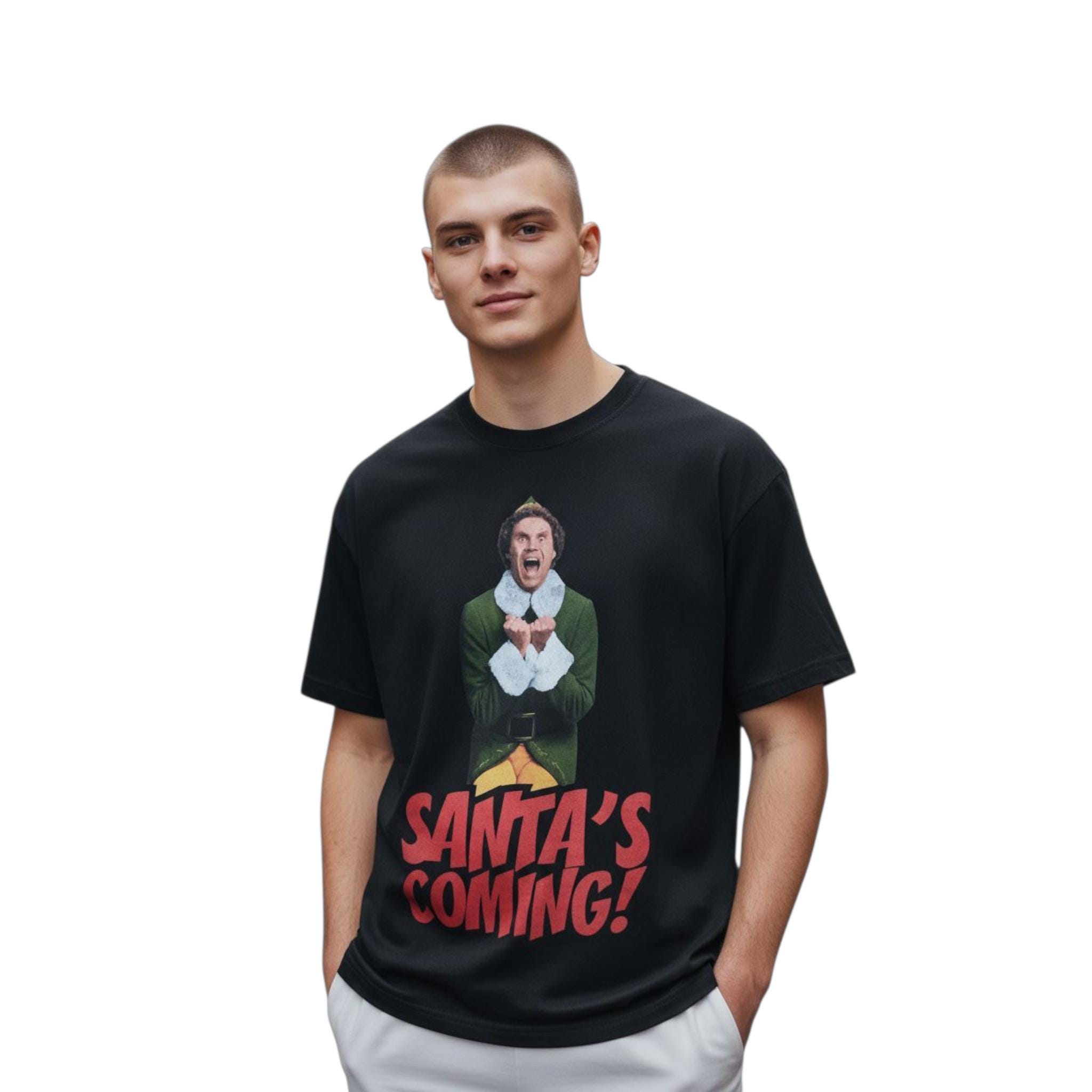 Get into the festive spirit with this fun Elf-inspired “Santa’s Coming!” T-shirt! Perfect for Christmas lovers, movie fans, or anyone who wants to bring holiday cheer to every room they walk into.