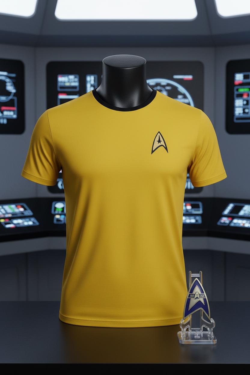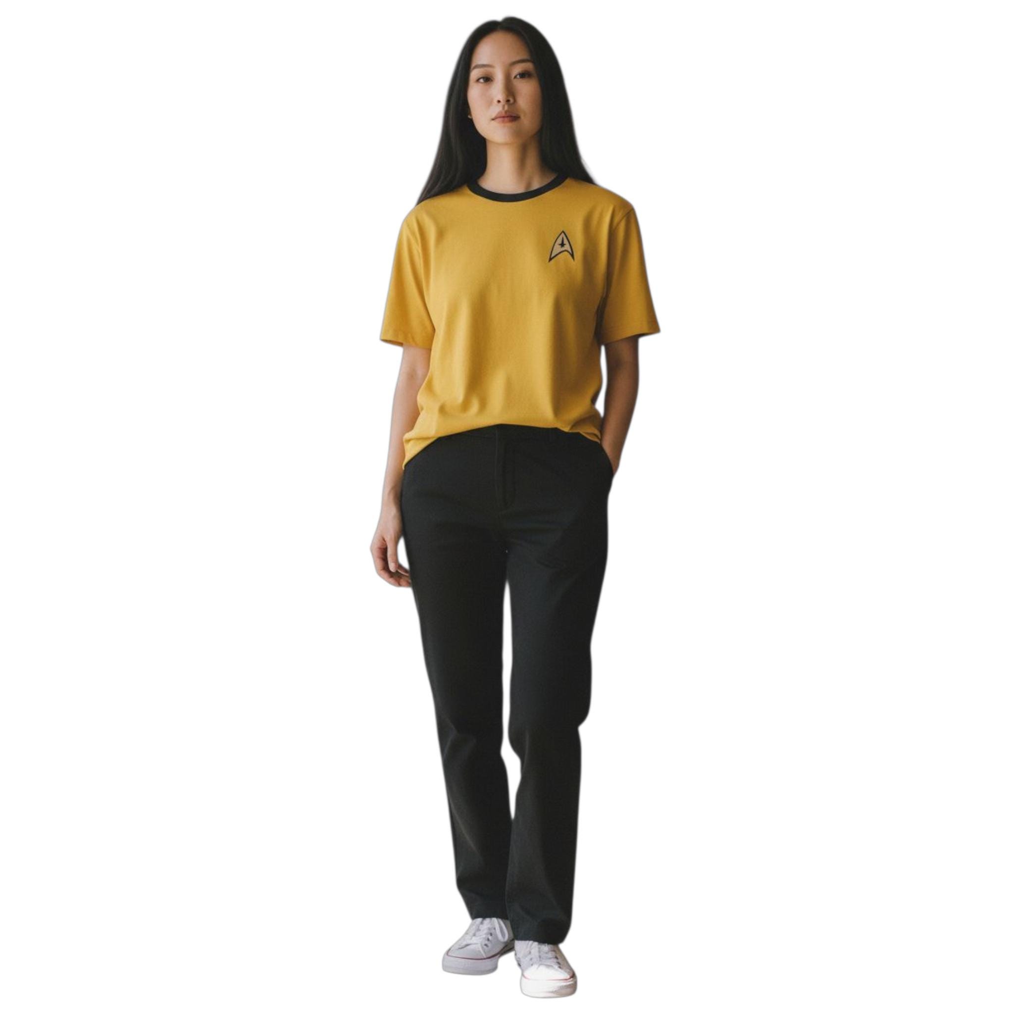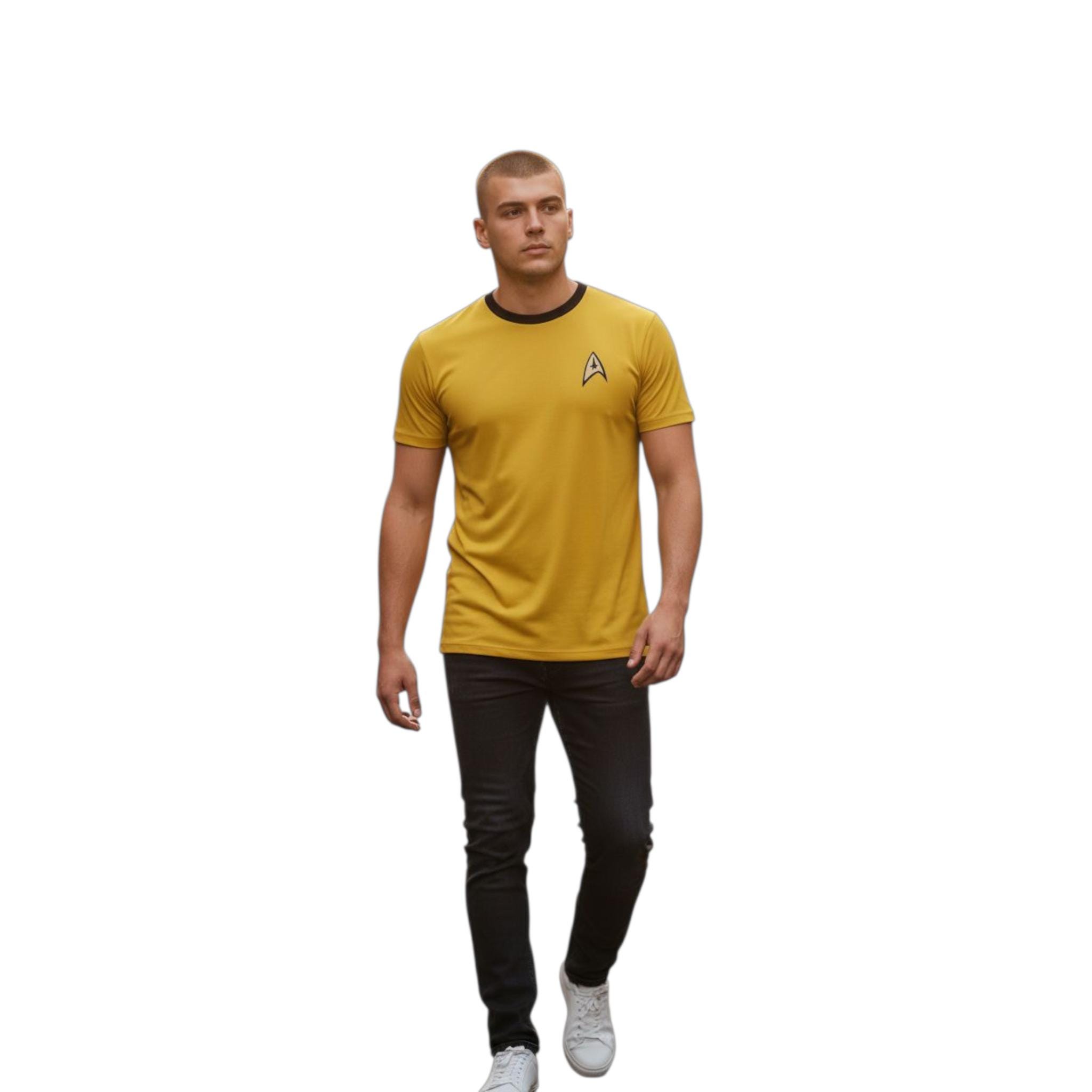 Bring bold sci-fi energy to your wardrobe with this Unisex Yellow Star Trek Logo Tee — a vibrant, standout shirt perfect for every dedicated Trek fan. Featuring the classic Starfleet insignia, this tee celebrates the iconic Star Trek universe with a clean, retro-inspired look.