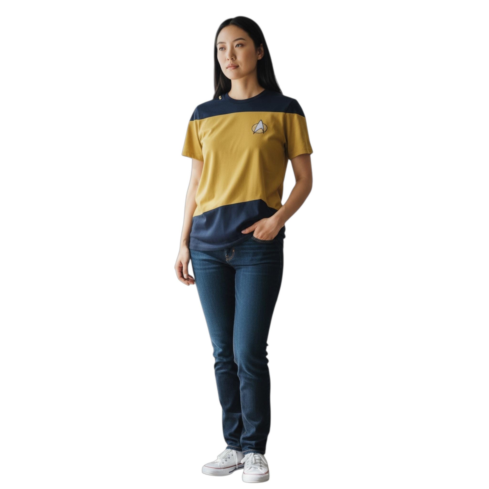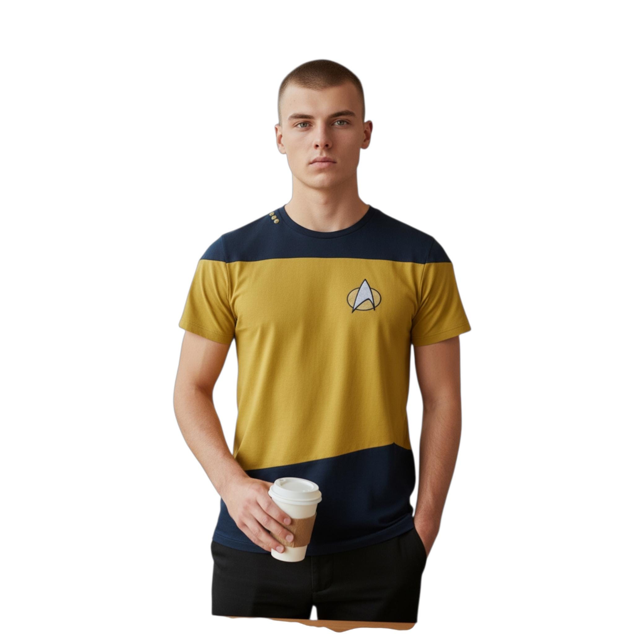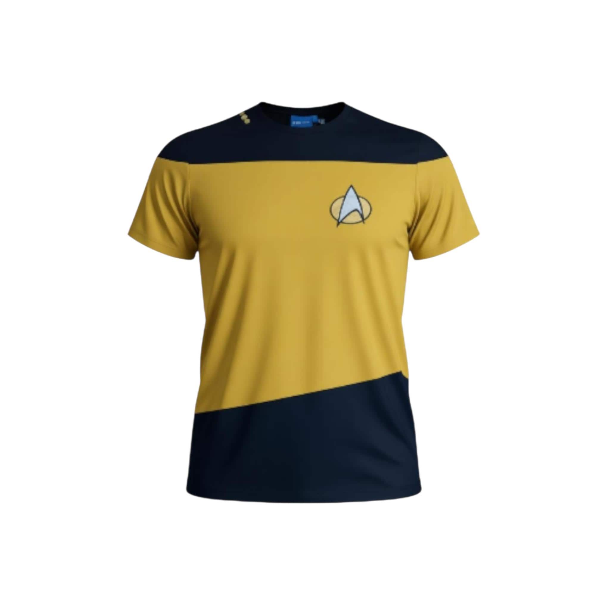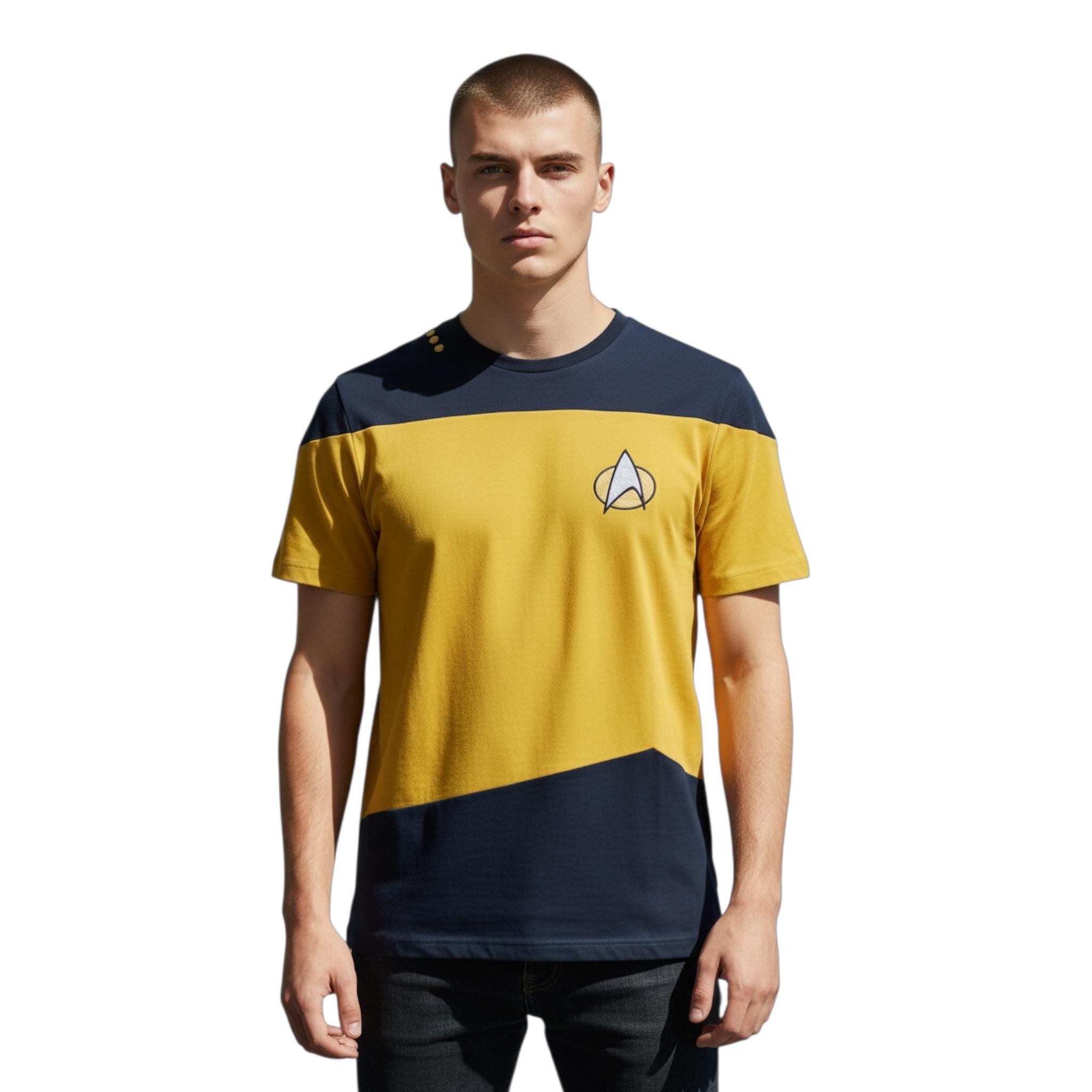 Bold, stylish, and perfect for every Trekkie — this Unisex Black & Yellow Star Trek Logo T-Shirt adds a sleek sci-fi touch to any outfit! Featuring the iconic Starfleet emblem against a striking two-tone black and blue design, this tee celebrates one of the most legendary franchises in TV and film history. Comfortable, versatile, and great for everyday wear or conventions.