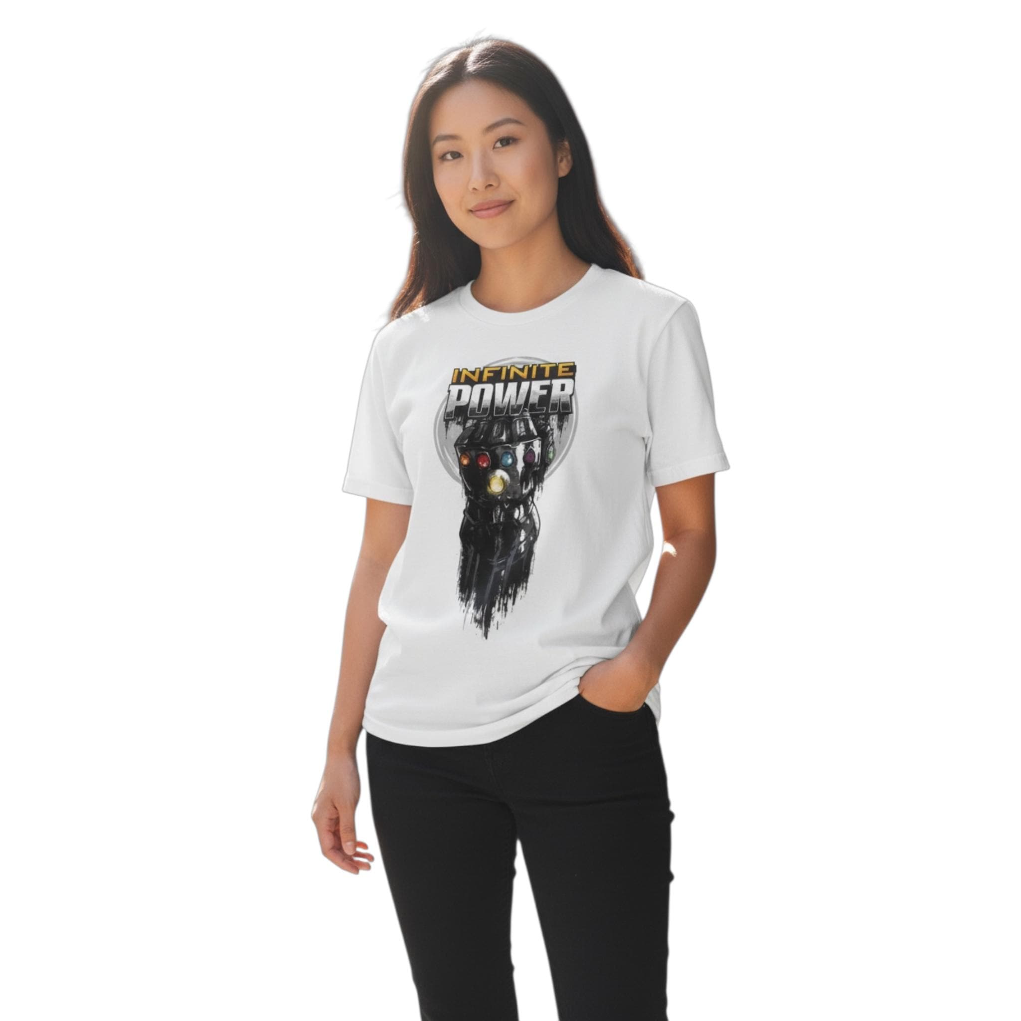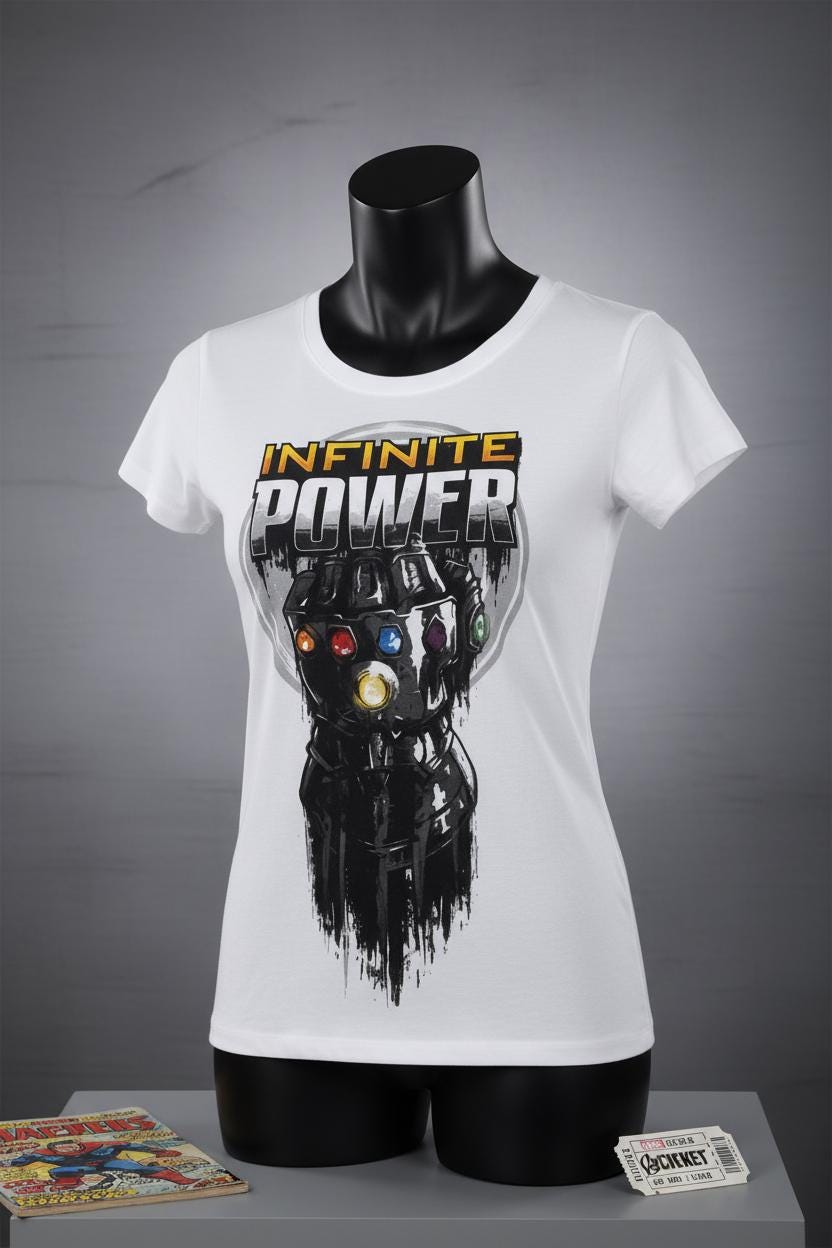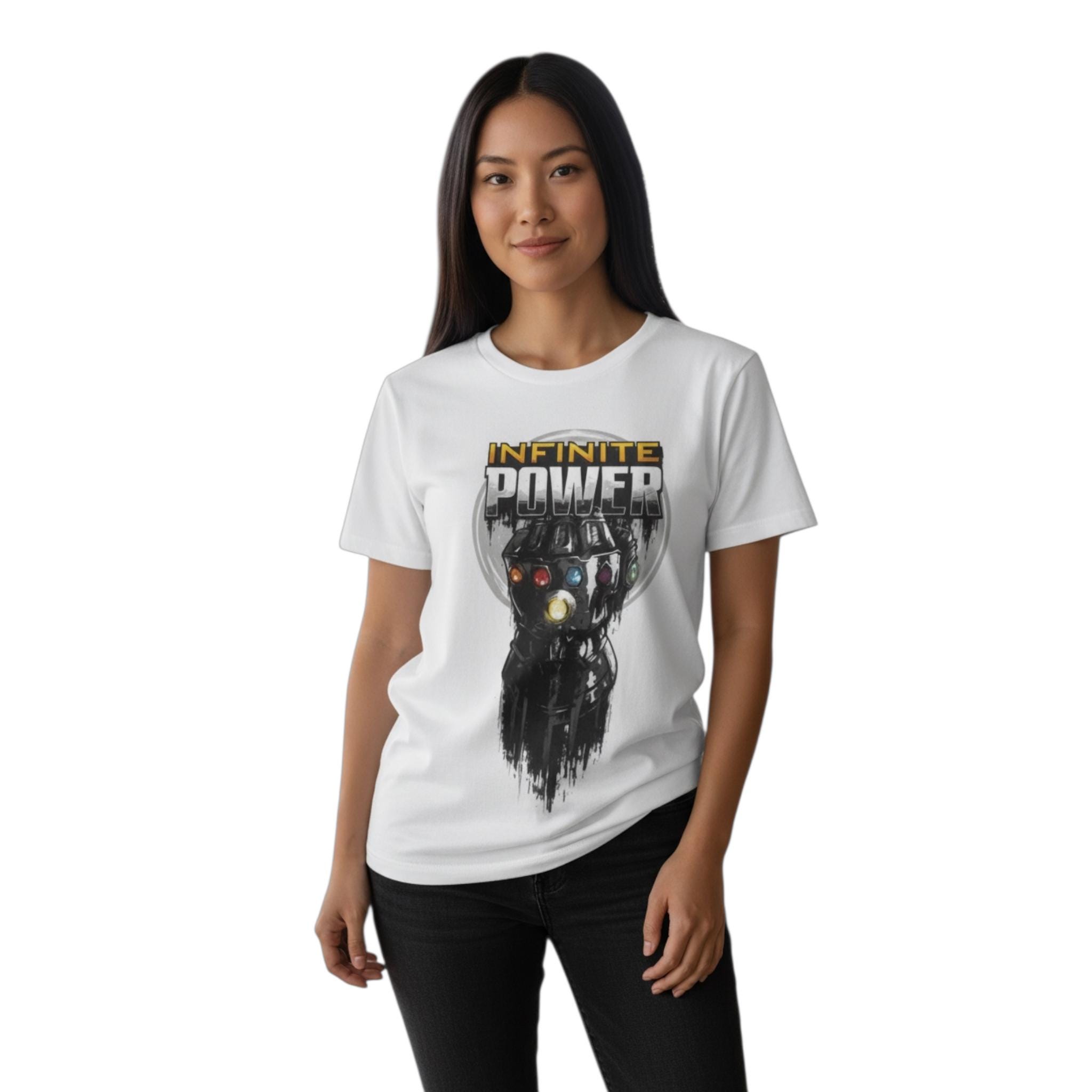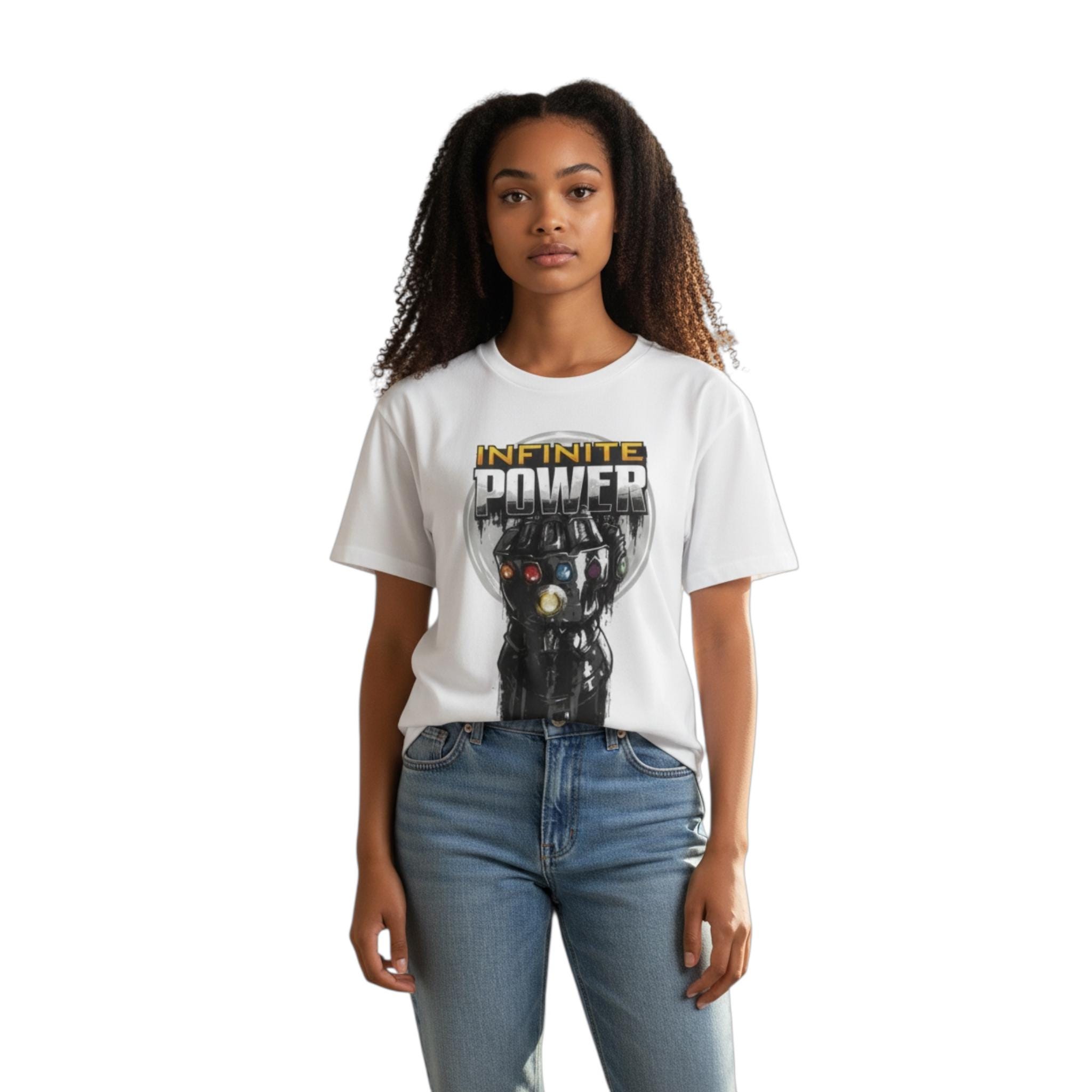 Unleash your inner superhero with this Women’s White Avengers Infinite Power T-Shirt, a must-have for Marvel fans and collectors alike. Featuring a bold Avengers Infinite Power graphic, this officially licensed fan tee celebrates the strength and legacy of Earth’s Mightiest Heroes.
