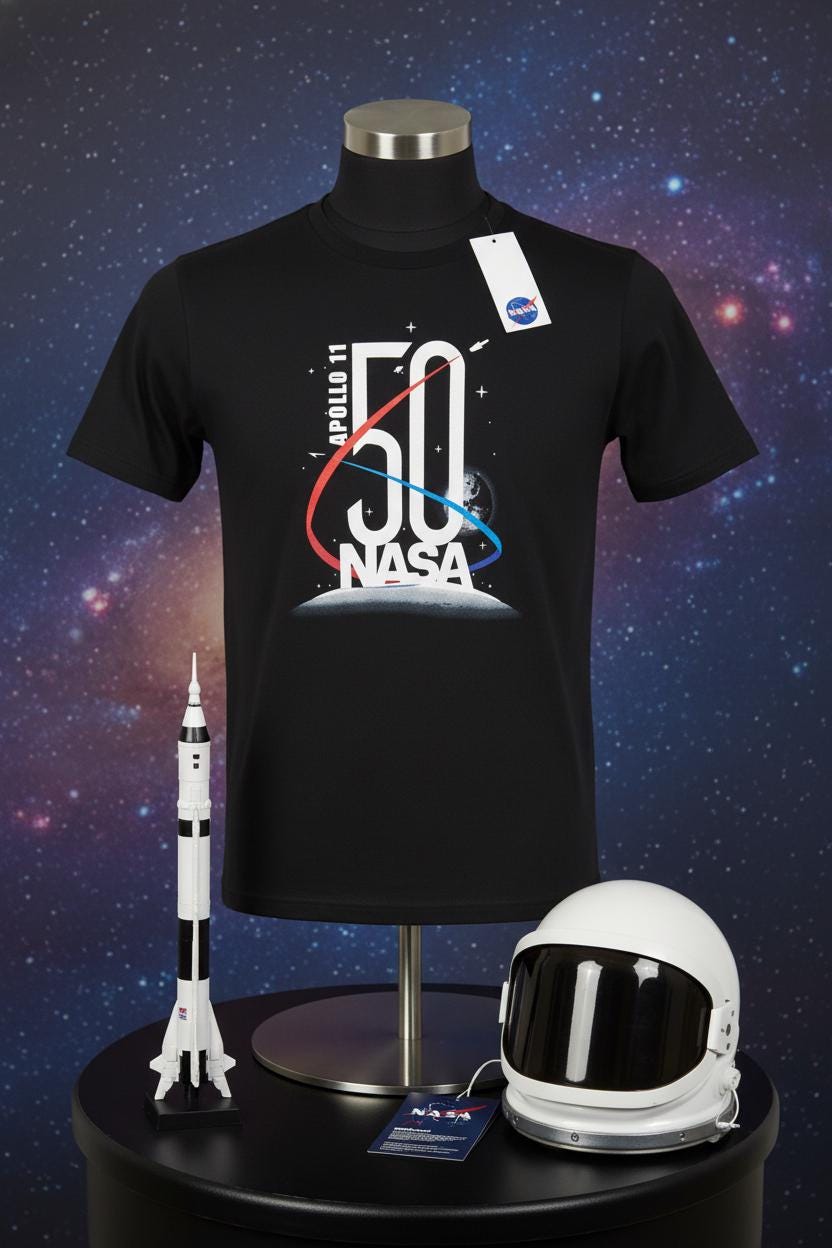 Celebrate one of the greatest moments in human history with this Unisex Adults Black Apollo 11 50th Anniversary T-Shirt. Featuring a bold space-inspired design commemorating the legendary NASA moon landing, this tee is perfect for space lovers, science fans, and collectors alike. Made for everyday comfort, this unisex graphic T-shirt offers a classic fit that works great for both men and women. The black color makes the design stand out while staying easy to style with jeans, shorts, or layered looks. Whether you’re adding it to your personal collection or gifting it to a space enthusiast, this shirt is a timeless tribute to Apollo 11. ✨ Details: • Unisex adults fit • Black Apollo 11 50th Anniversary graphic • NASA moon landing theme • Comfortable, breathable fabric • New with tags (NWT) • Great for casual wear, collectors, or gifts Perfect for fans of NASA, space exploration, astronomy, and historic missions. A must-have graphic tee celebrating the iconic Apollo 11 moon landing 🚀🌕