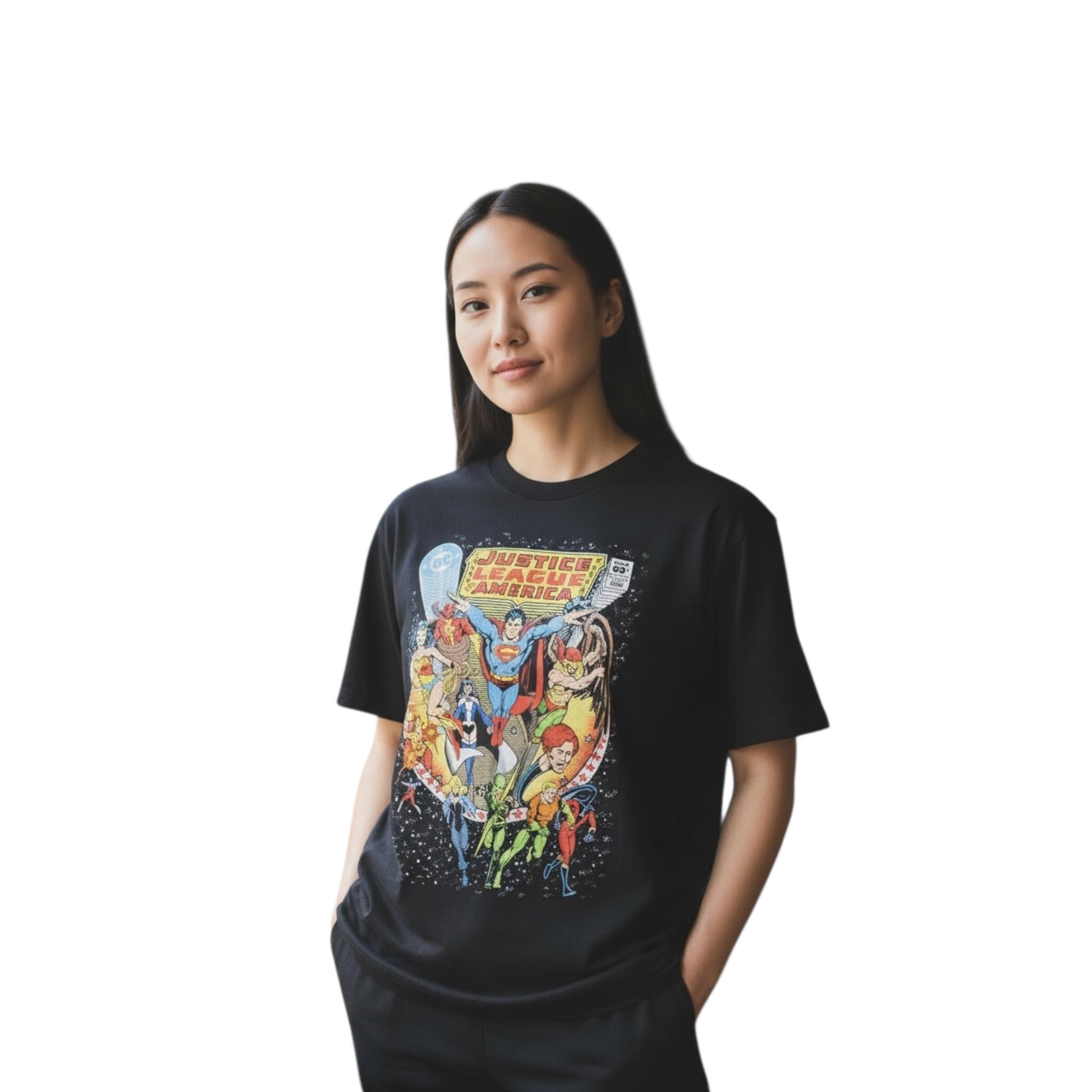 This Justice League America graphic tee is a must-have piece for any DC fan’s collection. Classic, bold, and timeless—ready to wear or gift.