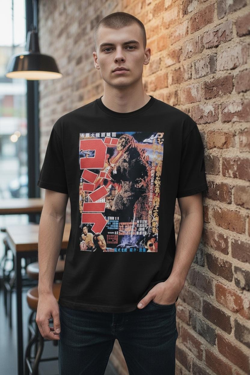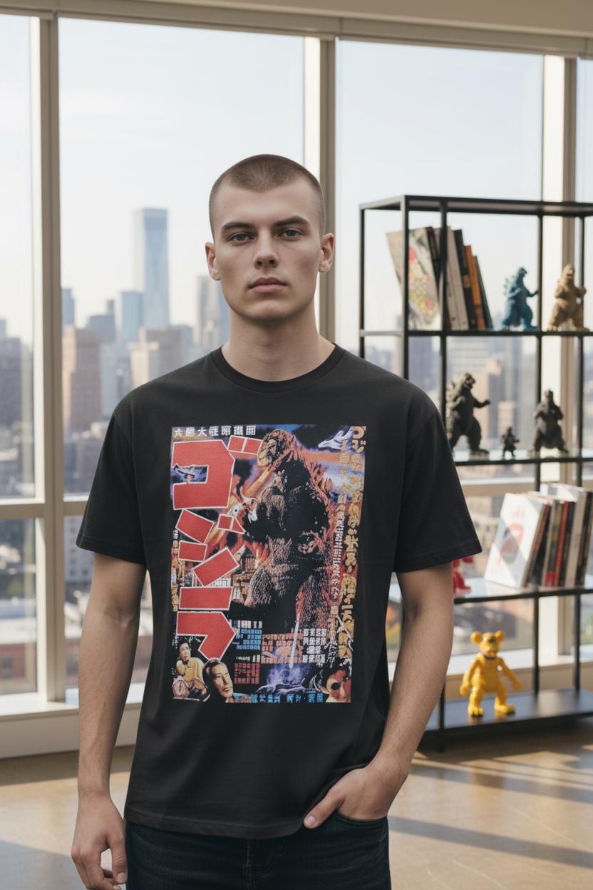 This tee showcases bold, eye-catching graphics inspired by the classic Son of Godzilla poster, capturing the spirit of classic cinema and monster movie history. Perfect for casual wear, conventions, film nights, or as a standout gift for any Godzilla enthusiast.