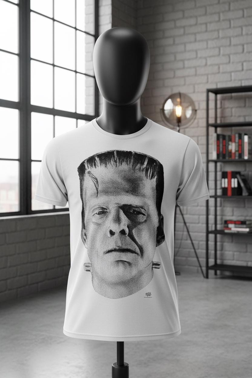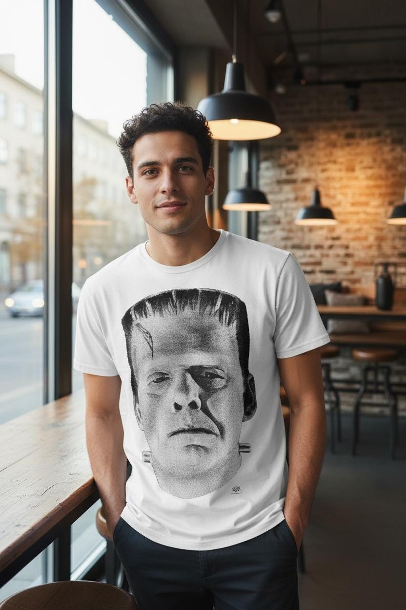 Bring legendary horror to your wardrobe with this Frankenstein Monster unisex white T-shirt. Inspired by the iconic classic monster, this tee is perfect for horror fans, vintage movie lovers, and collectors of timeless gothic style.