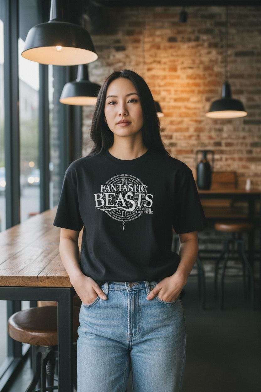 Step into the Wizarding World with this Fantastic Beasts And Where To Find Them Unisex Black T-Shirt. Inspired by the magical creatures and adventure of the beloved fantasy film, this tee is perfect for fans of wizarding lore, movie collectibles, and casual streetwear.